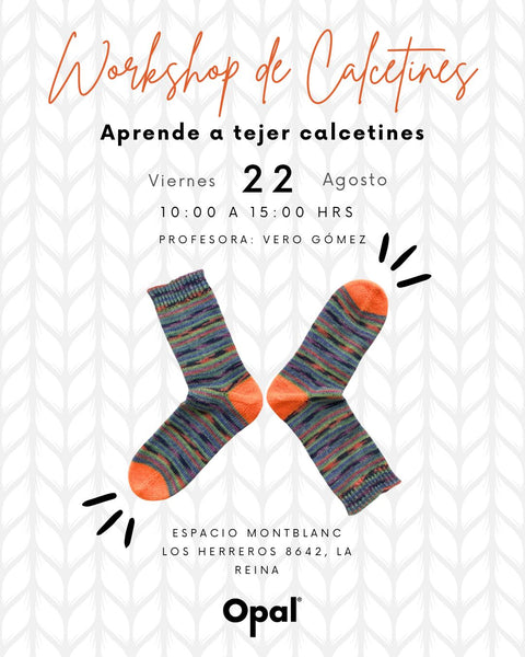 ¡NUEVA FECHA Y PRECIO OFERTA! Aprende a tejer tus propios calcetines desde cero con nuestro taller de calcetines Opal. Vive la experiencia de crear tus propias prendas de vestir y desarrolla nuevas habilidades con nuestra experimentada profesora Vero Gómez.  En este taller, podrás adentrarte en...